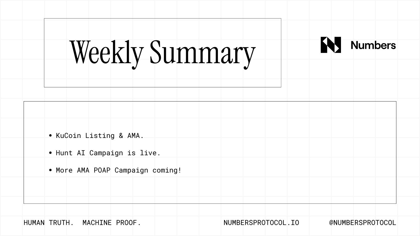 This week we expanded NUM’s real-world utility. KuCoin completed the NUM Mainnet integration on January 13 and opened deposits, please select “NUM Mainnet” when moving funds. This gives builders and holders a direct path from capture to on-chain receipts and licensing. Our team also joined KuCoin for an AMA on January 14 to explain how Human truth, machine proof supports the trust stack developers need.